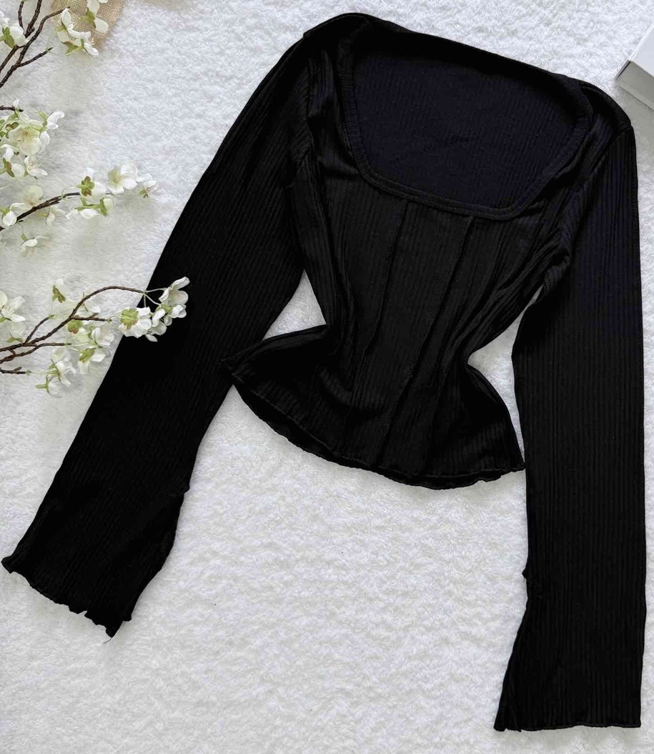 کراپ یقه خشتی آستین کلوش